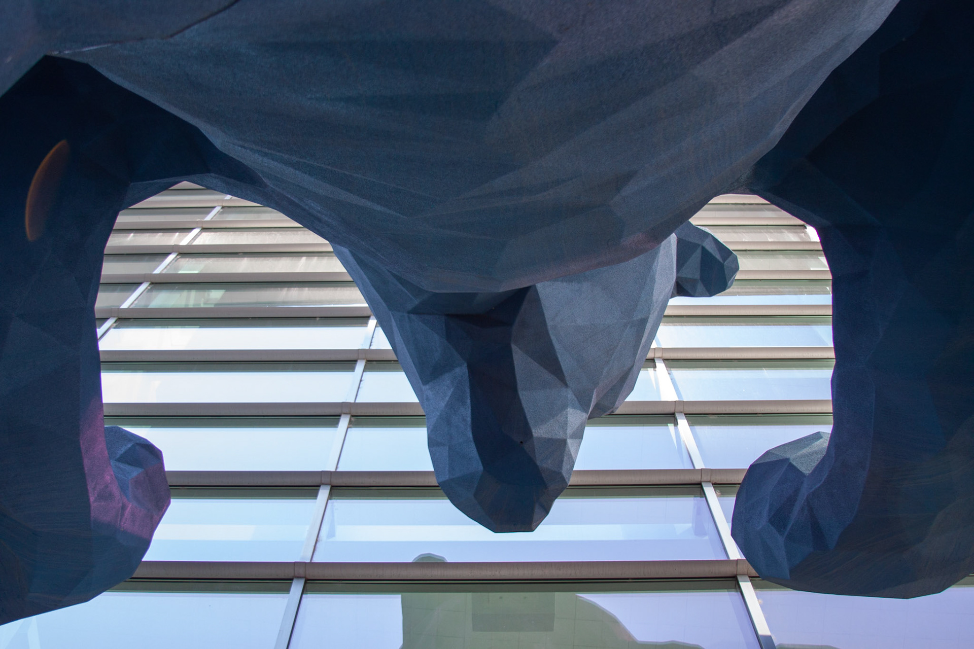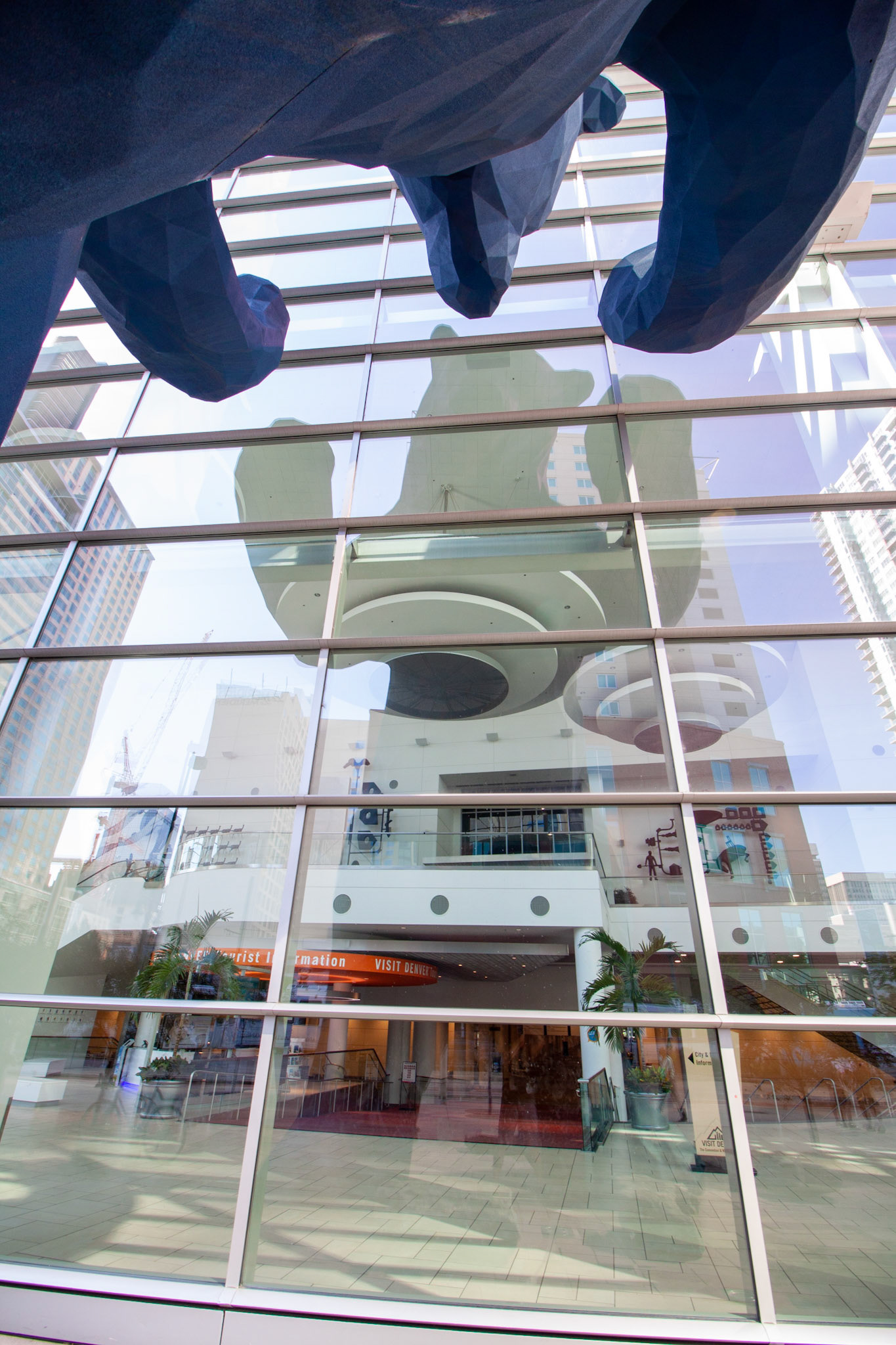 Denver's "lapis-lazuli-colored" bear is ever curious about what is happening in the Colorado Convention Center.